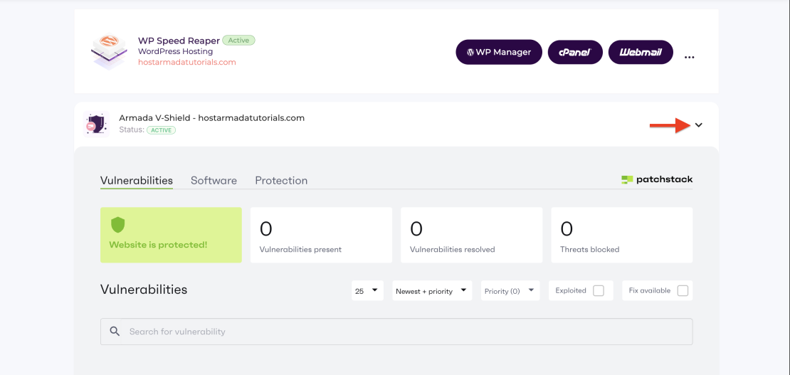 Armada V-Shield is an add-on security service available with HostArmada’s WordPress Hosting plans. It gives you the option to integrate advanced, application-level protection into your website through the Patchstack security plugin.